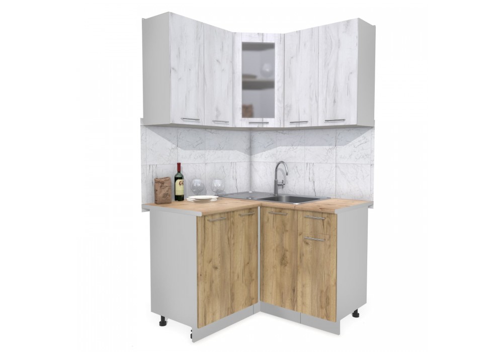 Кухонный гарнитур Мила 1,2х1,2 м (Дуб белый/Дуб золотой) фабрика Интерлиния