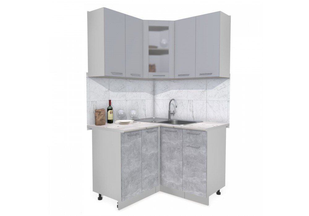 Кухонный гарнитур Мила 1,2х1,2 м (Серебро/Бетон) фабрика Интерлиния