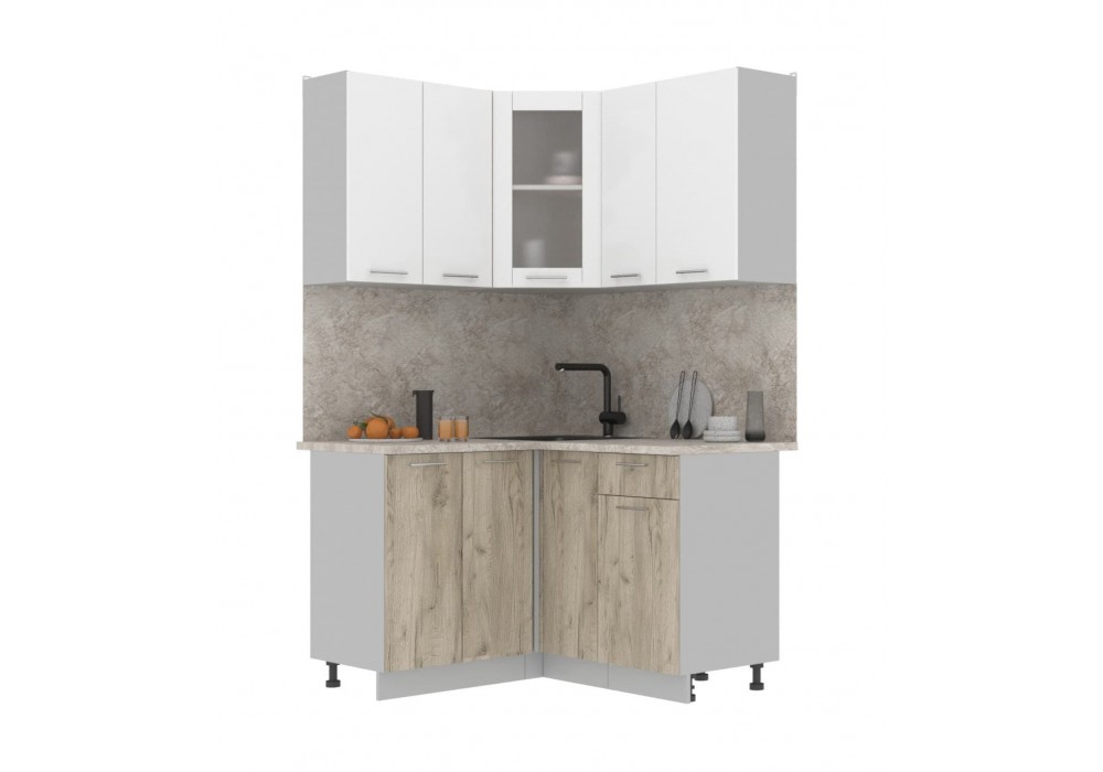 Кухонный гарнитур Мила 1,2х1,3 м (Белый Платинум/Дуб серый) фабрика Интерлиния