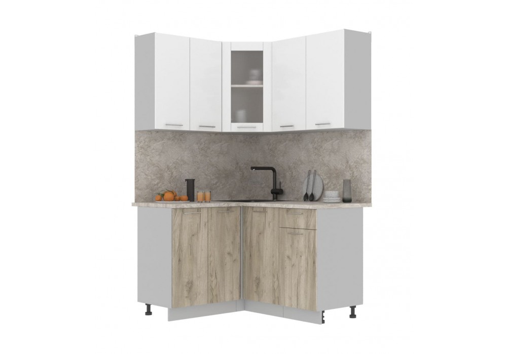 Кухонный гарнитур Мила 1,2х1,4 м (Белый Платинум/Дуб серый) фабрика Интерлиния