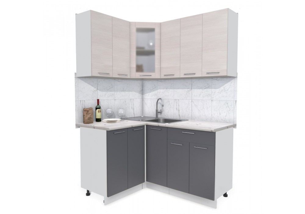 Кухонный гарнитур Мила 1,2х1,5 м (Вудлайн кремовый/Антрацит) фабрика Интерлиния