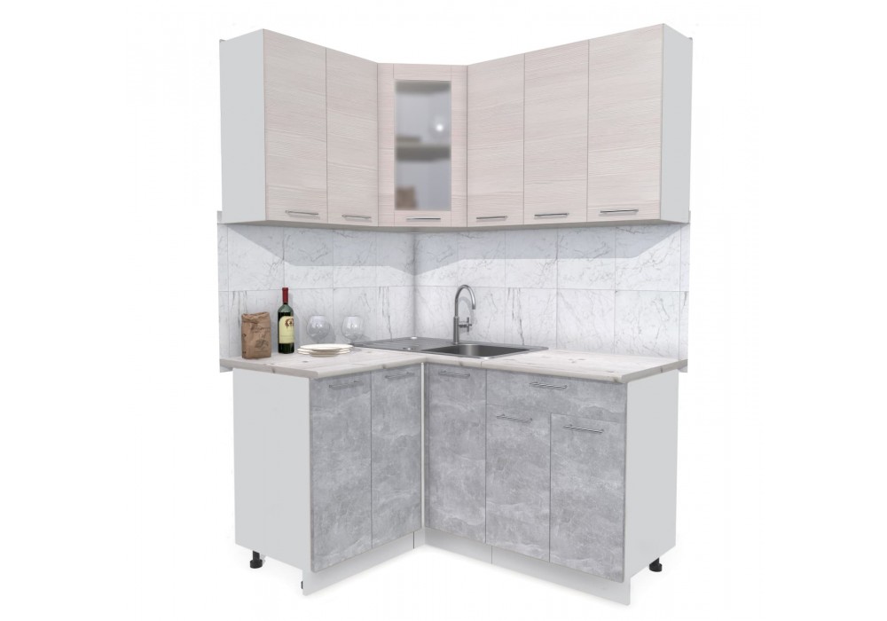 Кухонный гарнитур Мила 1,2х1,5 м (Вудлайн кремовый/Бетон) фабрика Интерлиния