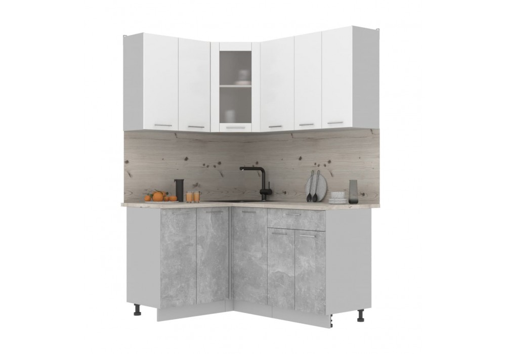 Кухонный гарнитур Мила 1,2х1,6 м (Белый Платинум/Бетон) фабрика Интерлиния