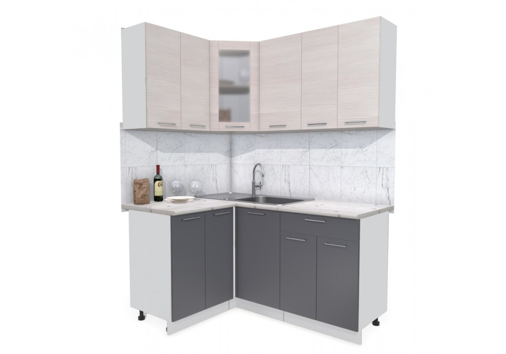 Кухонный гарнитур Мила 1,2х1,6 м (Вудлайн кремовый/Антрацит) фабрика Интерлиния