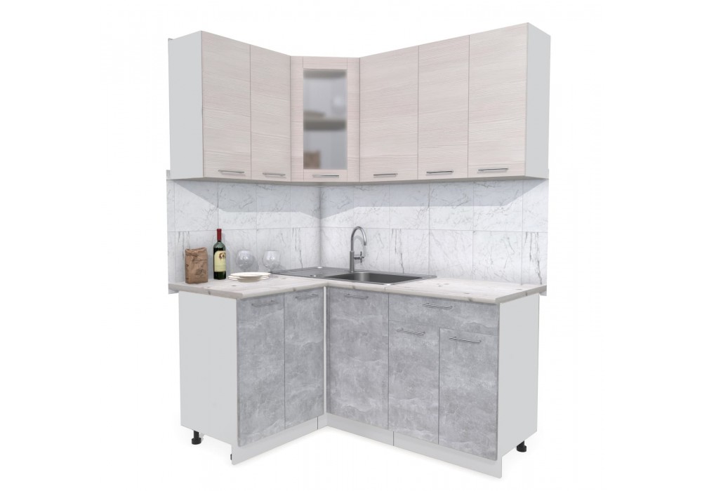Кухонный гарнитур Мила 1,2х1,6 м (Вудлайн кремовый/Бетон) фабрика Интерлиния
