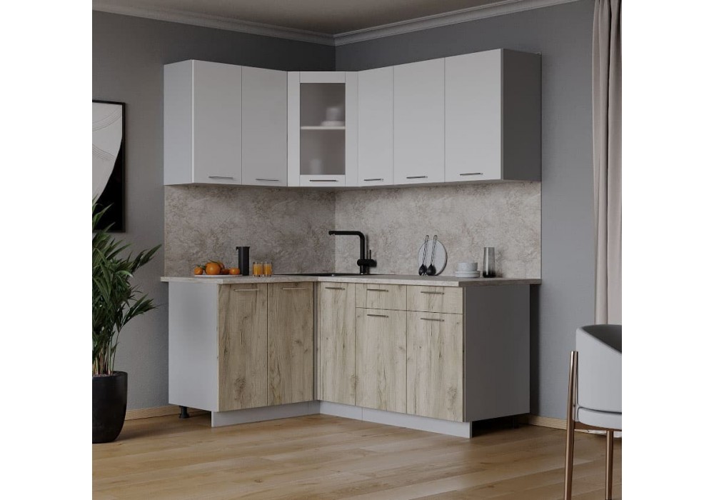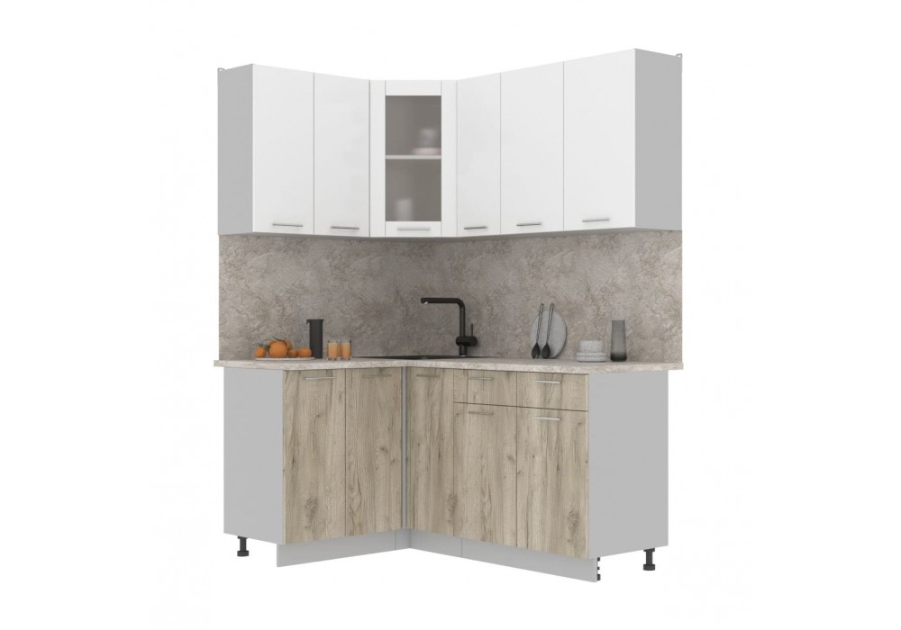 Кухонный гарнитур Мила 1,2х1,7 м (Белый Платинум/Дуб серый) фабрика Интерлиния