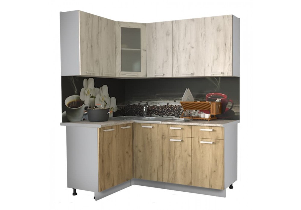 Кухонный гарнитур Мила 1,2х1,8 м (Дуб белый/Дуб золотой) фабрика Интерлиния