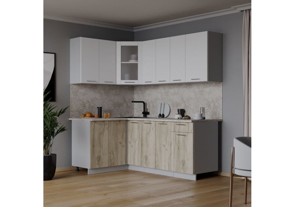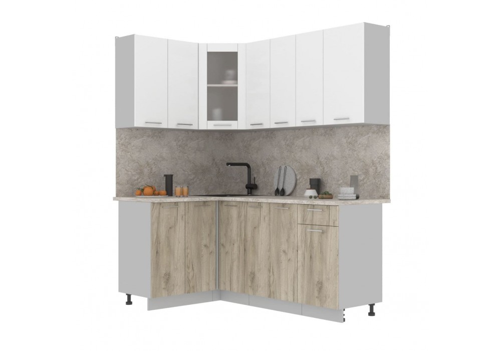 Кухонный гарнитур Мила 1,2х1,9 м (Белый Платинум/Дуб серый) фабрика Интерлиния