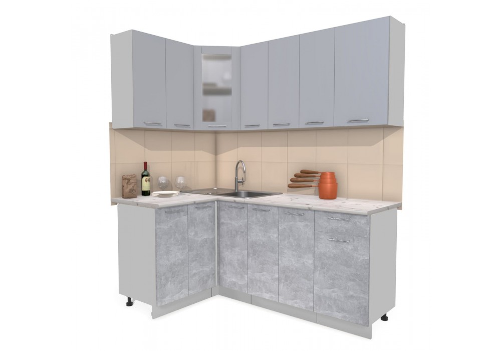Кухонный гарнитур Мила 1,2х1,9 м (Серебро/Бетон) фабрика Интерлиния