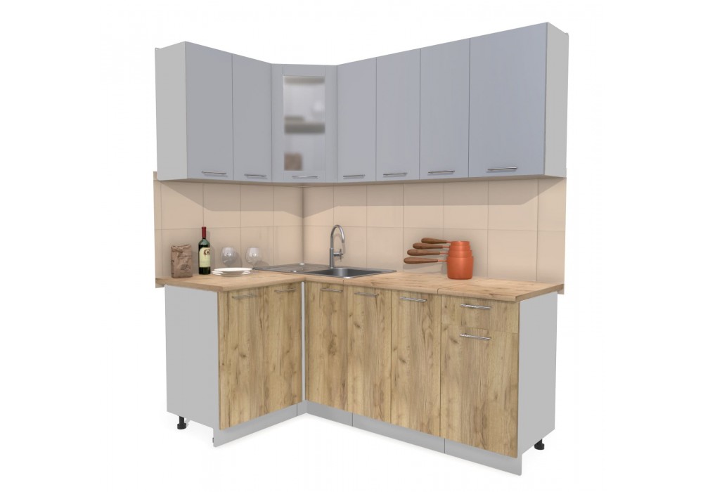 Кухонный гарнитур Мила 1,2х1,9 м (Серебро/Дуб золотой) фабрика Интерлиния
