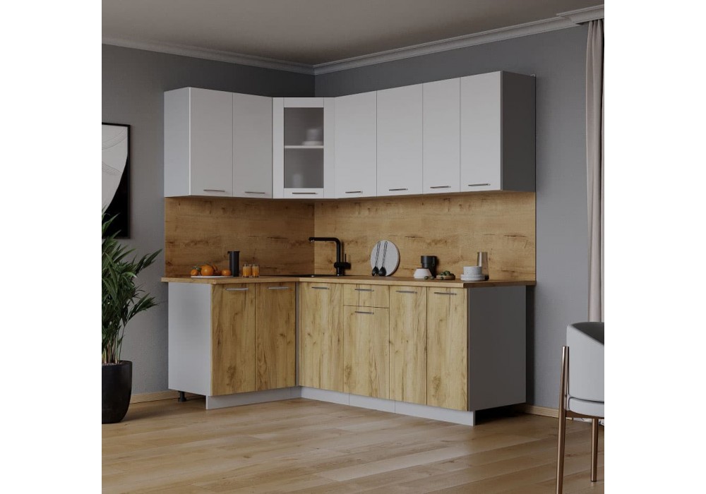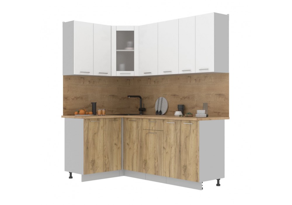 Кухонный гарнитур Мила 1,2х2,0 м (Белый Платинум/Дуб золотой) фабрика Интерлиния