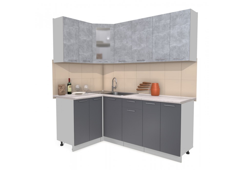 Кухонный гарнитур Мила 1,2х2,0 м (Бетон/Антрацит) фабрика Интерлиния