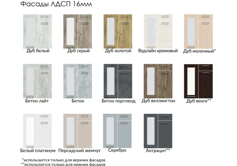 Глубина напольных шкафов с учетом столешницы: 600 мм.