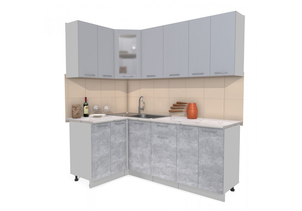 Кухонный гарнитур Мила 1,2х2,0 м (Серебро/Бетон) фабрика Интерлиния