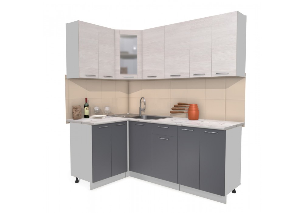 Кухонный гарнитур Мила 1,2х2,0 м (Вудлайн кремовый/Антрацит) фабрика Интерлиния