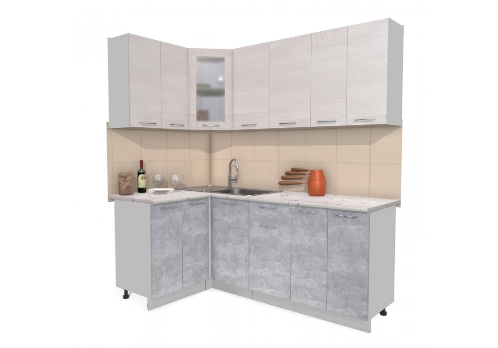 Кухонный гарнитур Мила 1,2х2,0 м (Вудлайн кремовый/Бетон) фабрика Интерлиния