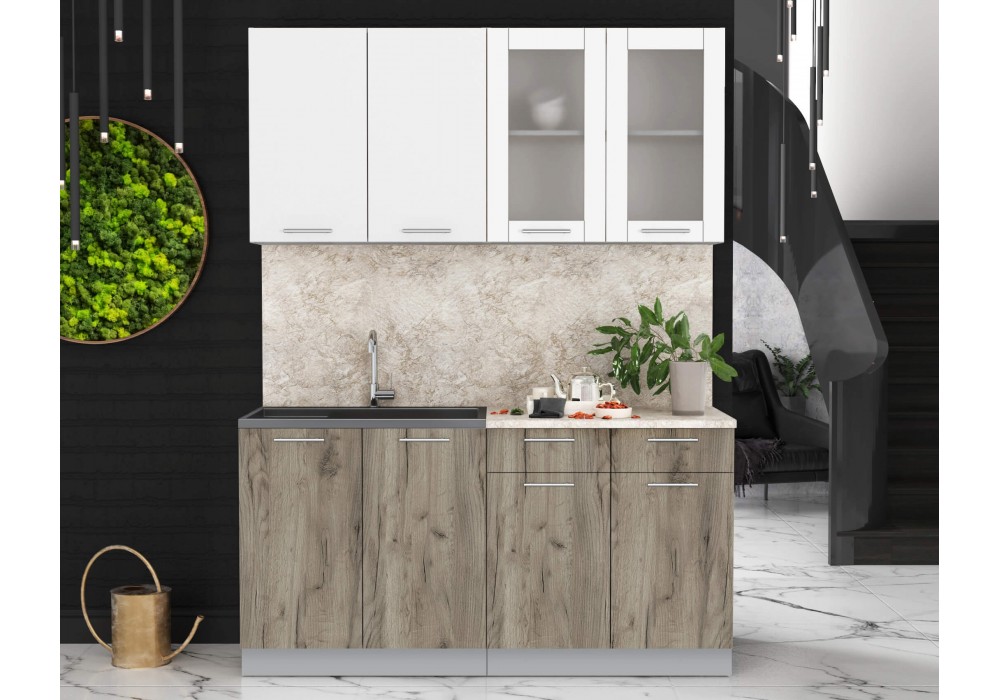 Кухонный гарнитур Мила 1,6 м (Белый Платинум/Дуб серый) фабрика Интерлиния