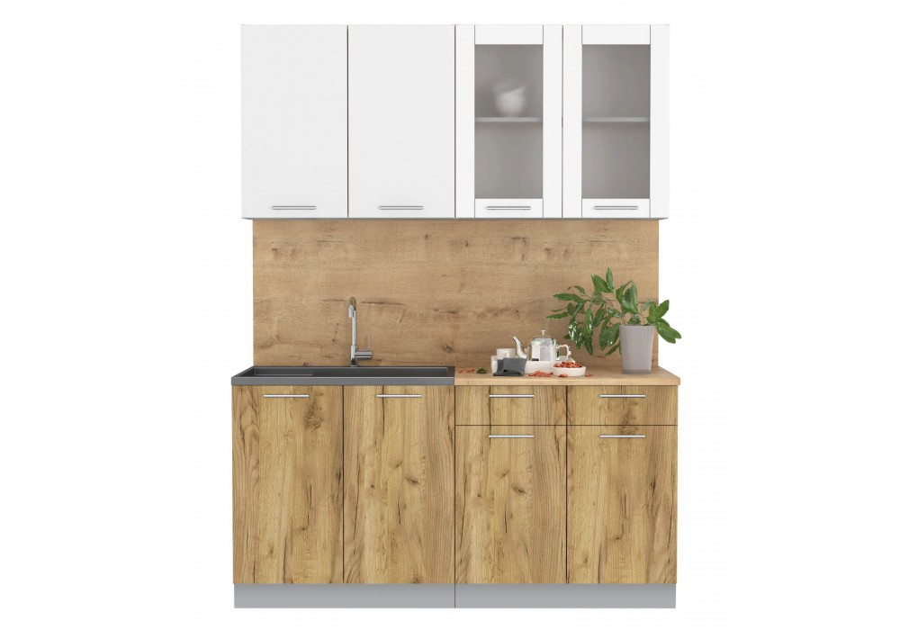Кухонный гарнитур Мила 1,6 м (Белый Платинум/Дуб золотой) фабрика Интерлиния