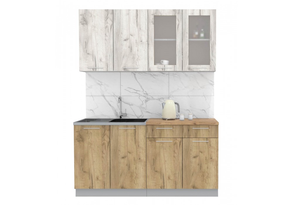 Кухонный гарнитур Мила 1,6 м (Дуб белый/Дуб золотой) фабрика Интерлиния