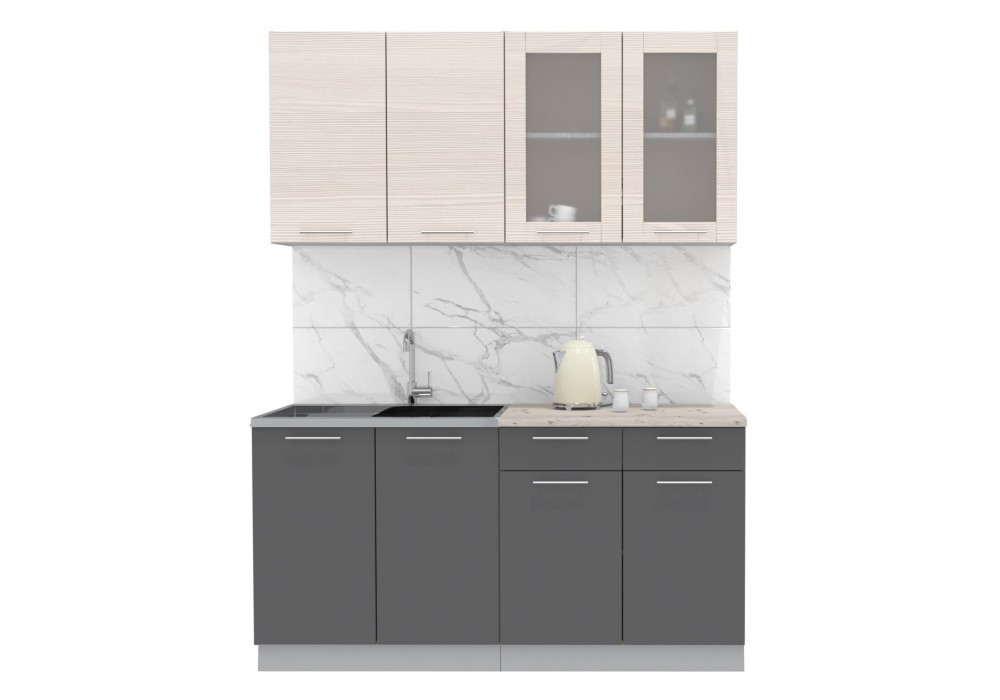 Кухонный гарнитур Мила 1,6 м (Вудлайн кремовый/Антрацит) фабрика Интерлиния