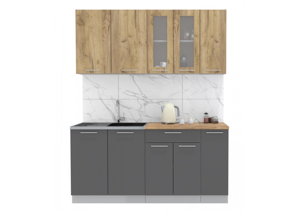 Кухонный гарнитур Мила 1,7 м (Дуб золотой/Антрацит) фабрика Интерлиния