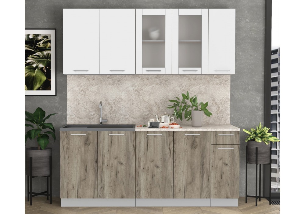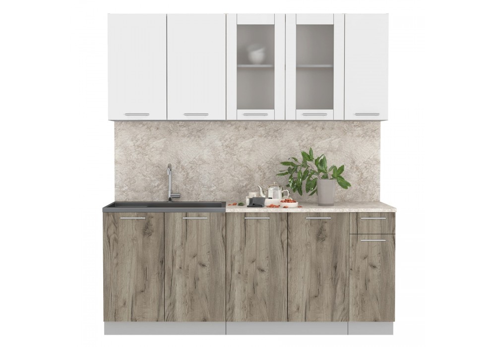 Кухонный гарнитур Мила 1,9 м (Белый Платинум/Дуб серый) фабрика Интерлиния