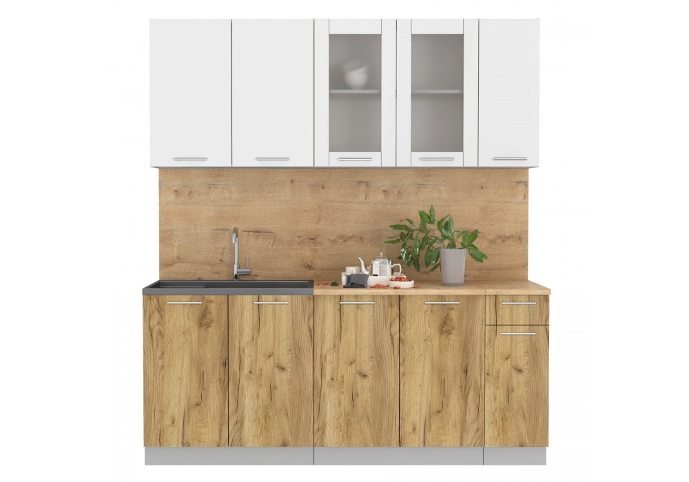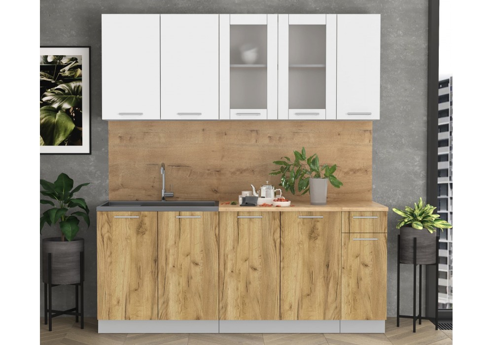 Кухонный гарнитур Мила 1,9 м (Белый Платинум/Дуб золотой) фабрика Интерлиния
