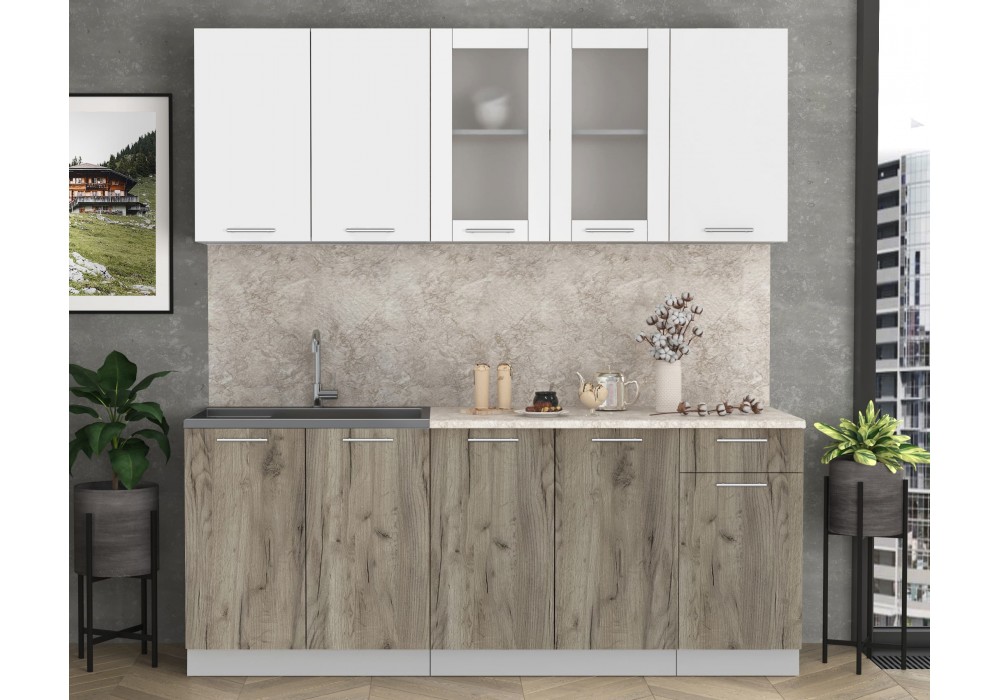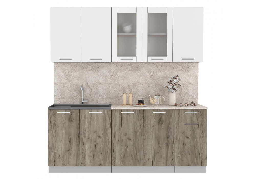 Кухонный гарнитур Мила 2,0 м (Белый Платинум/Дуб серый) фабрика Интерлиния