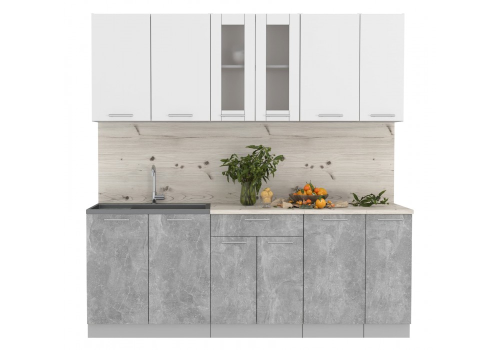 Кухонный гарнитур Мила 2,1м (Белый Платинум/Бетон) фабрика Интерлиния