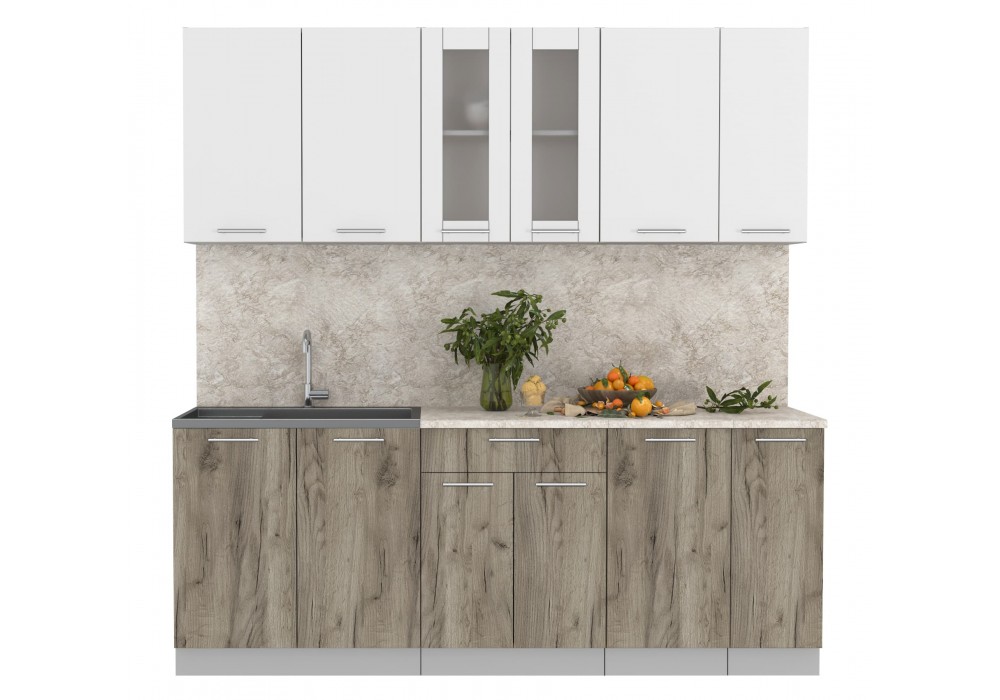 Кухонный гарнитур Мила 2,1м (Белый Платинум/Дуб серый) фабрика Интерлиния