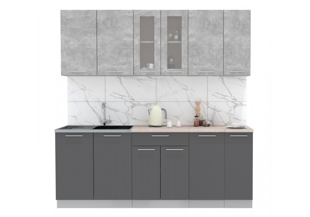 Кухонный гарнитур Мила 2,1м (Бетон/Антрацит) фабрика Интерлиния
