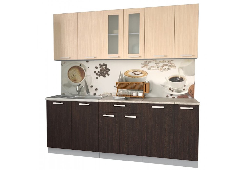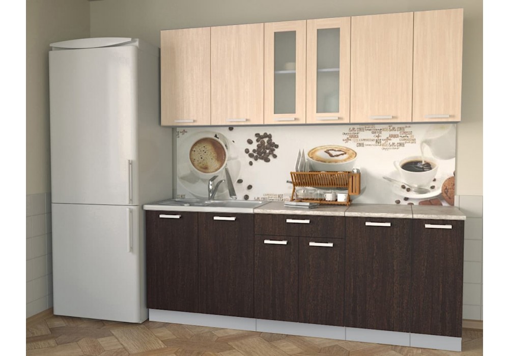 Кухонный гарнитур Мила 2,1м (Дуб молочный/Дуб венге) фабрика Интерлиния