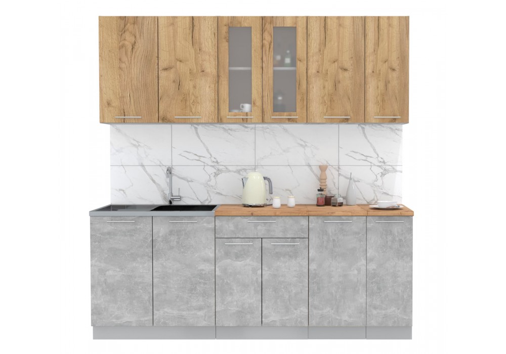 Кухонный гарнитур Мила 2,1м (Дуб золотой/Бетон) фабрика Интерлиния