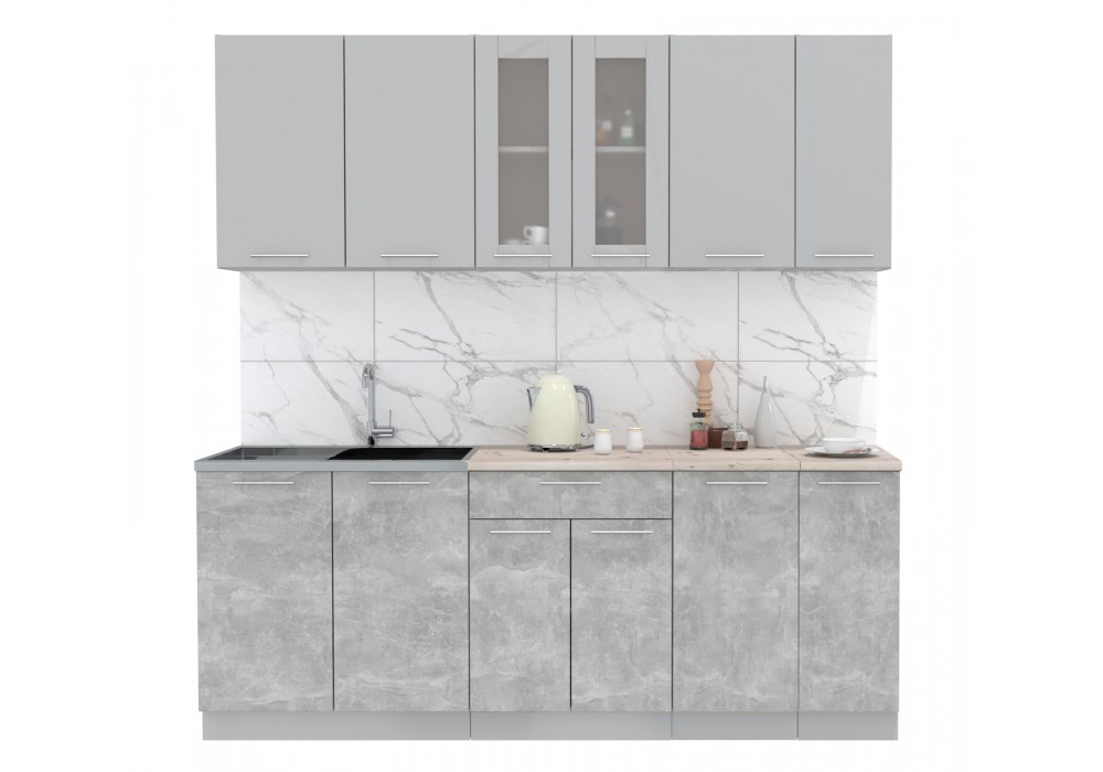 Кухонный гарнитур Мила 2,1м (Серебро/Бетон) фабрика Интерлиния