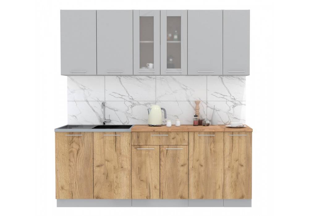 Кухонный гарнитур Мила 2,1м (Серебро/Дуб золотой) фабрика Интерлиния