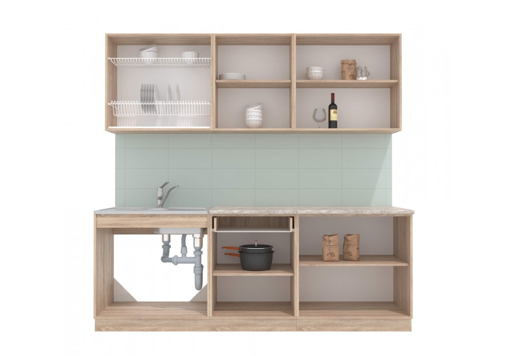 - Высота напольных шкафов с учетом столешницы и ножек: 850 мм.