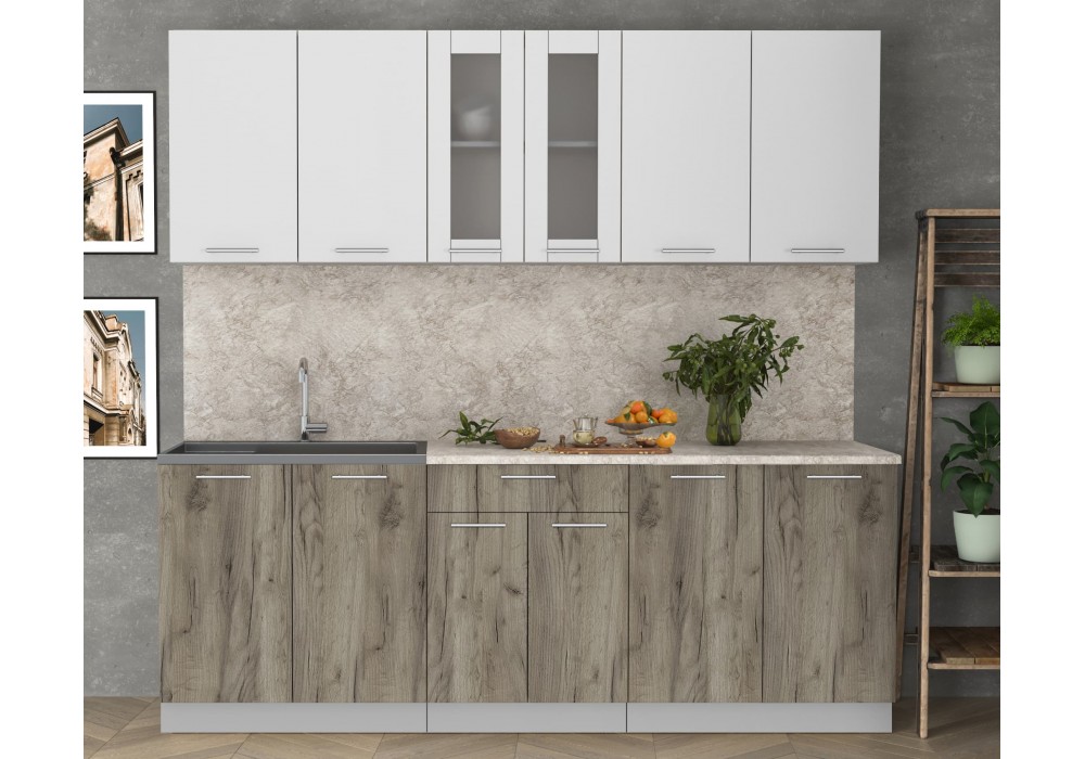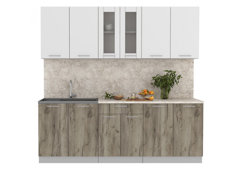 Кухонный гарнитур Мила 2,2м (Белый Платинум/Дуб серый) фабрика Интерлиния