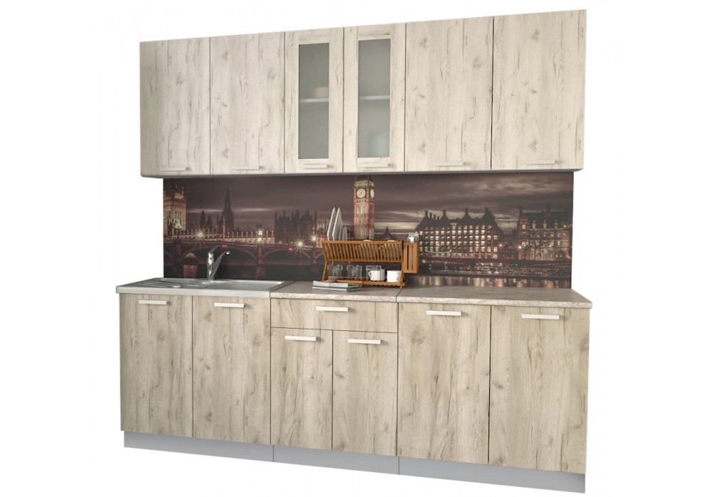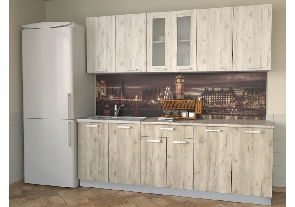 Кухонный гарнитур Мила 2,2м (Дуб белый/Дуб серый) фабрика Интерлиния