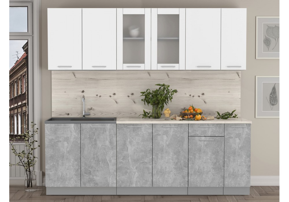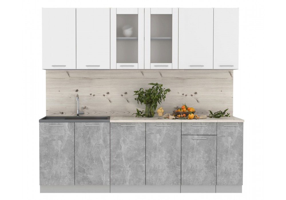 Кухонный гарнитур Мила 2,3м (Белый Платинум/Бетон) фабрика Интерлиния