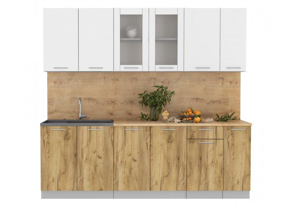 Кухонный гарнитур Мила 2,3м (Белый Платинум/Дуб золотой) фабрика Интерлиния