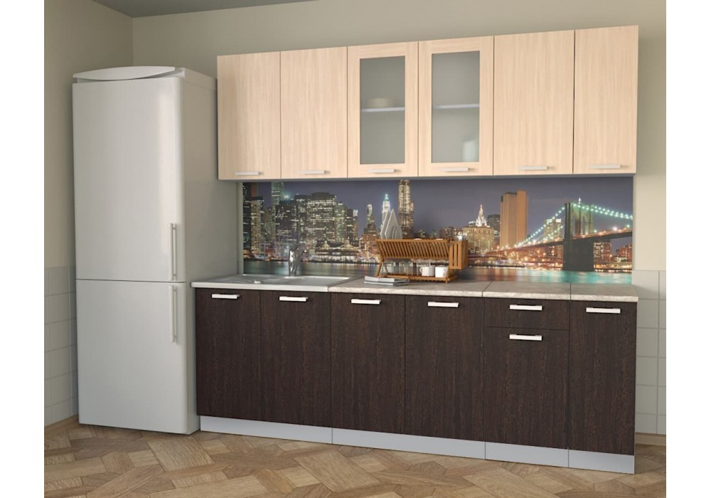 Кухонный гарнитур Мила 2,3м (Дуб молочный/Дуб венге) фабрика Интерлиния