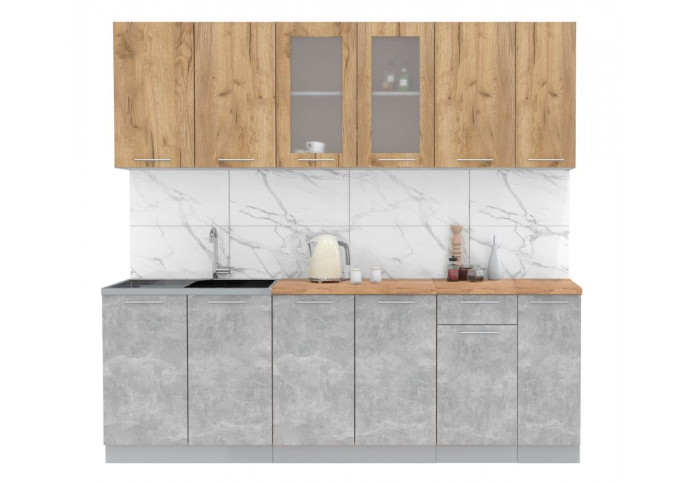 Кухонный гарнитур Мила 2,3м (Дуб золотой/Бетон) фабрика Интерлиния