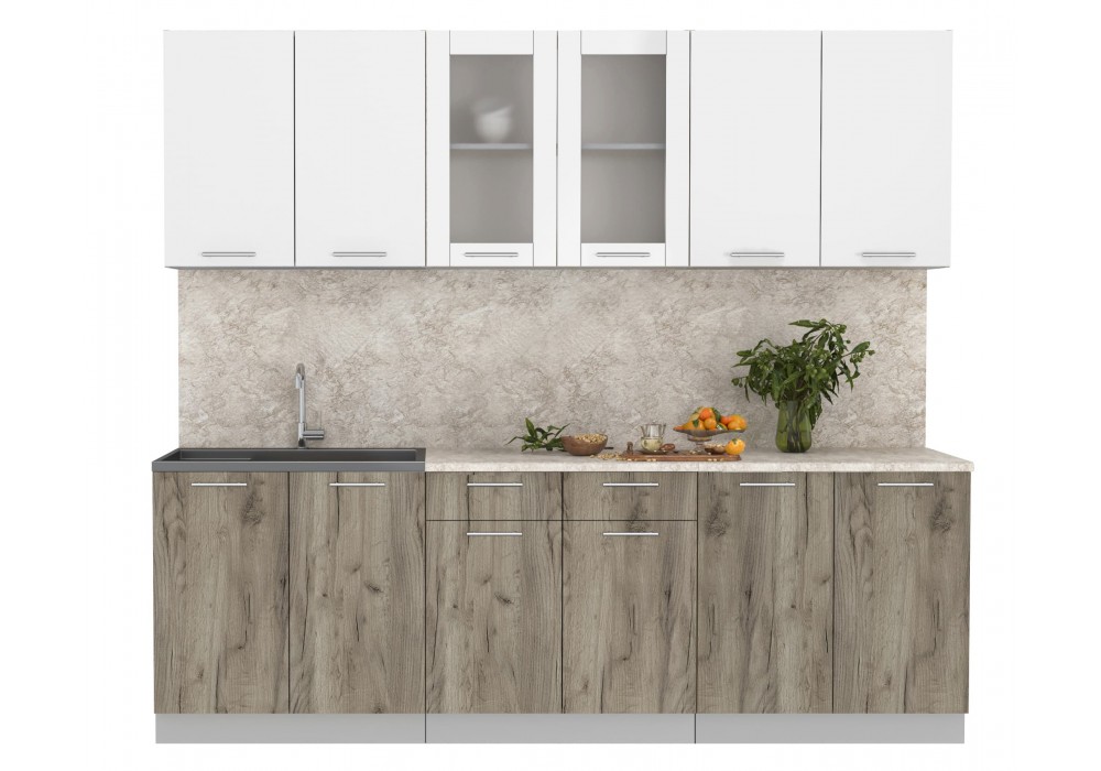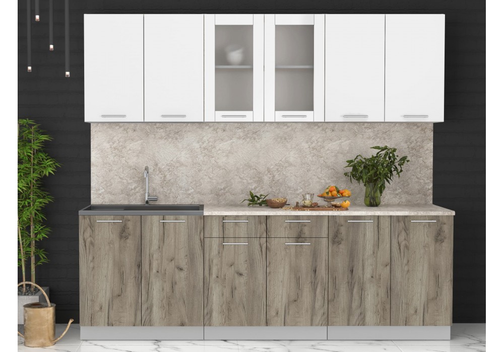 Кухонный гарнитур Мила 2,4 м (Белый Платинум/Дуб серый) фабрика Интерлиния
