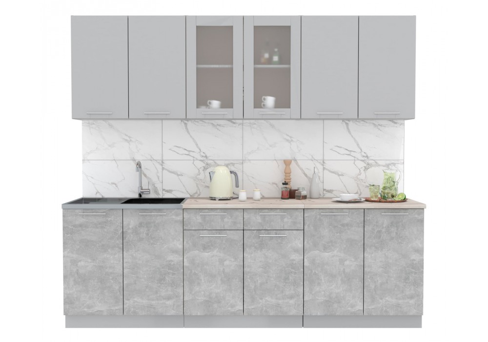 Кухонный гарнитур Мила 2,4 м (Серебро/Бетон) фабрика Интерлиния