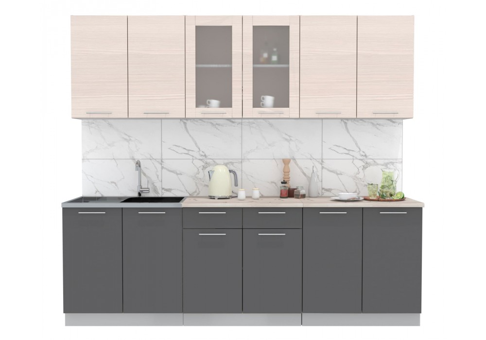 Кухонный гарнитур Мила 2,4 м (Вудлайн кремовый/Антрацит) фабрика Интерлиния