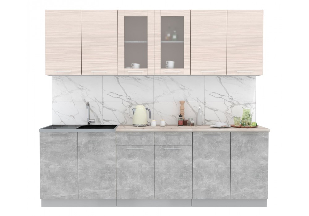 Кухонный гарнитур Мила 2,4 м (Вудлайн кремовый/Бетон) фабрика Интерлиния