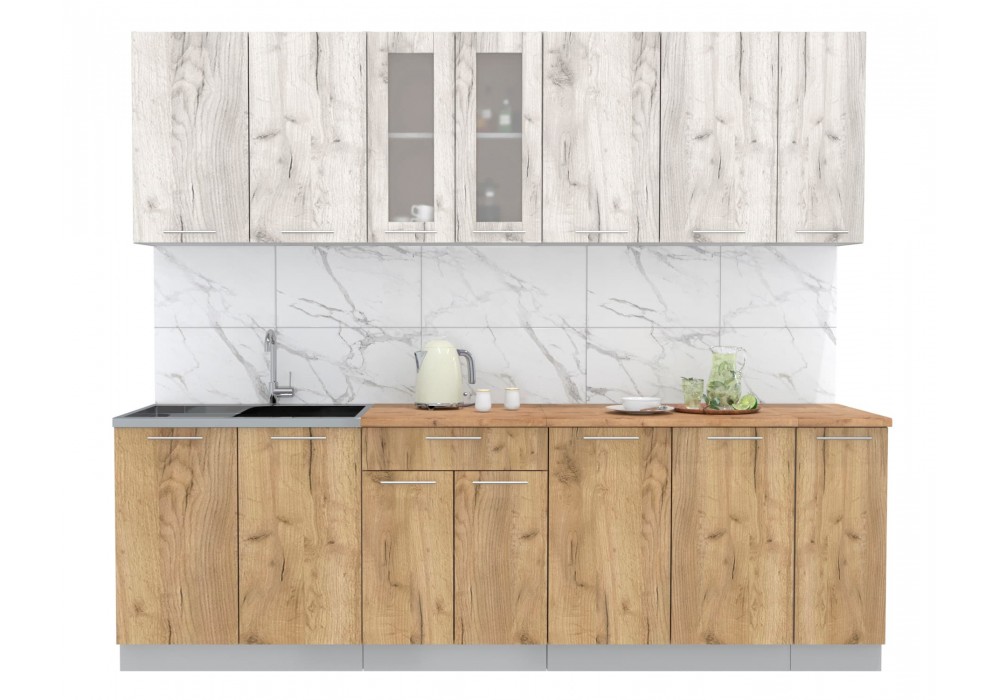 Кухонный гарнитур Мила 2,5 м (Дуб белый/Дуб золотой) фабрика Интерлиния