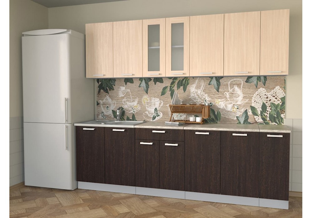Кухонный гарнитур Мила 2,5 м (Дуб молочный/Дуб венге) фабрика Интерлиния