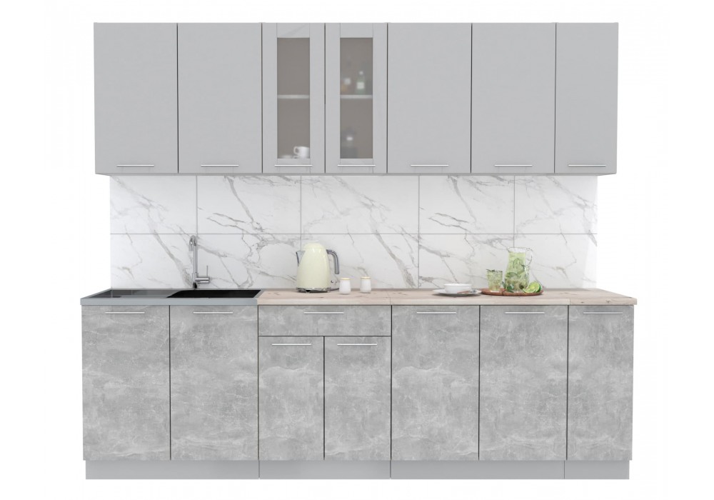 Кухонный гарнитур Мила 2,5 м (Серебро/Бетон) фабрика Интерлиния