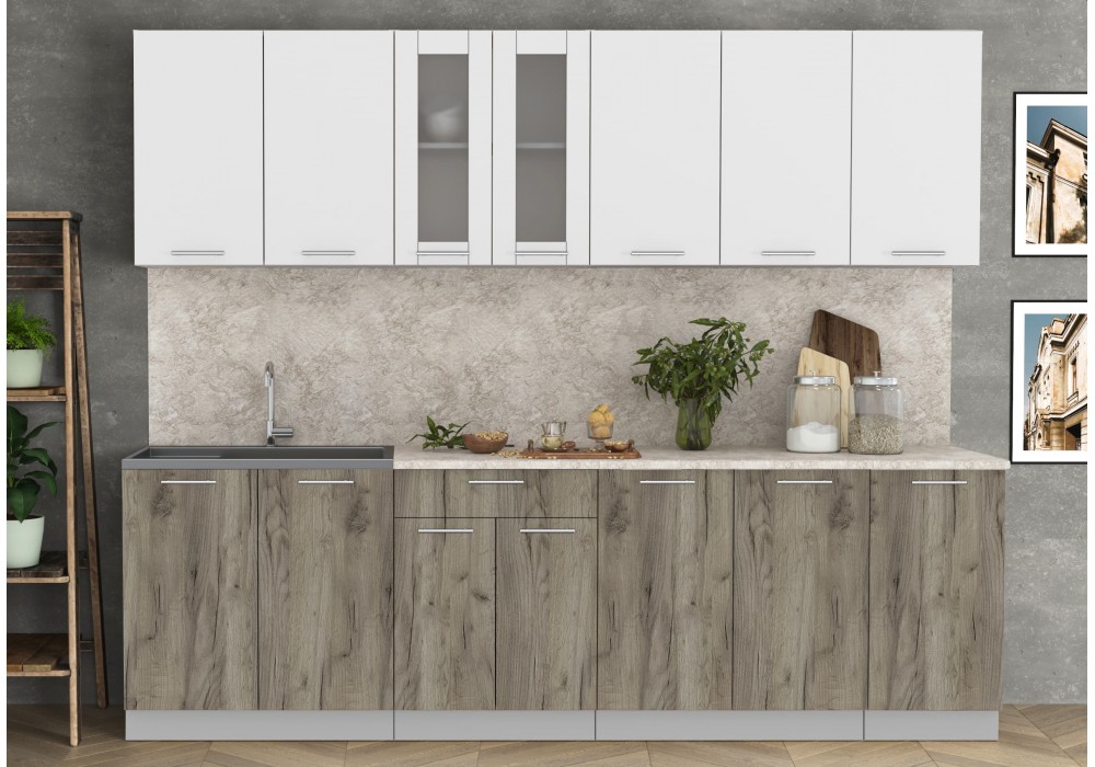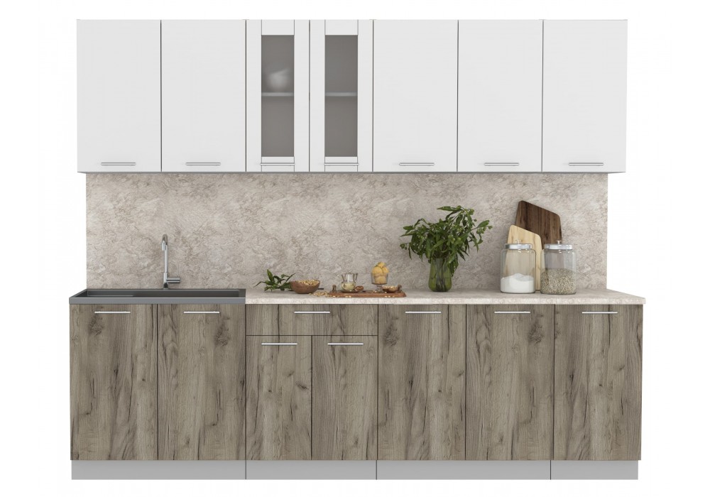 Кухонный гарнитур Мила 2,6 м (Белый Платинум/Дуб серый) фабрика Интерлиния